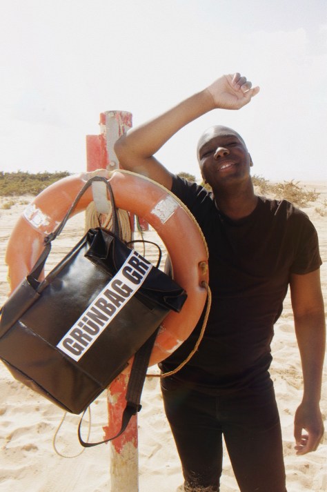 ” I think the world needs more smiles and respect for the environment , that’s why I chose the brand @grunbag #grünbag 100% #recycle ♻️ ” @jeanlucsalathielmeledje Shot in #dunas #corrajelo 🌵 discover more on grunbag.eco #greenfashion #sustainablebag . #ad / #collaborazione