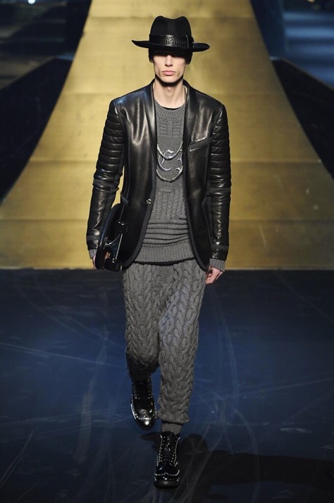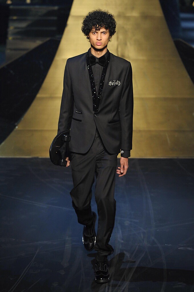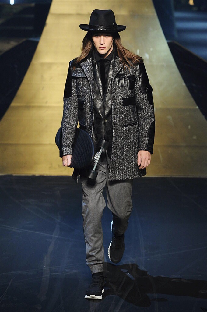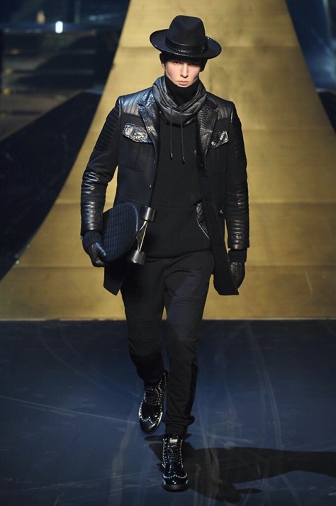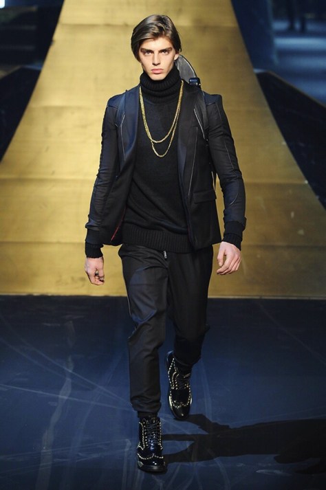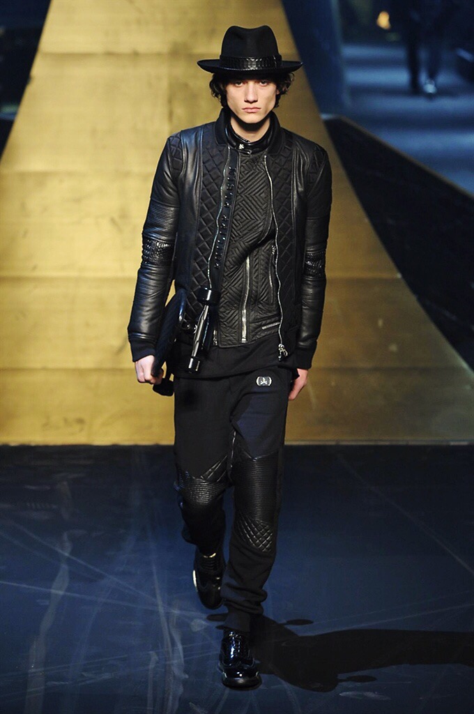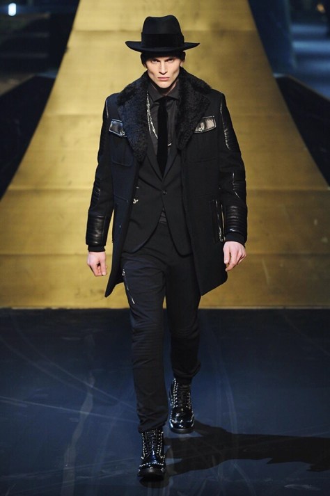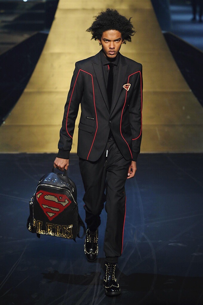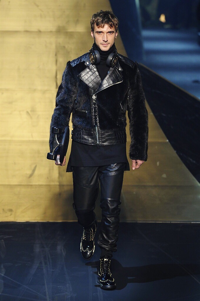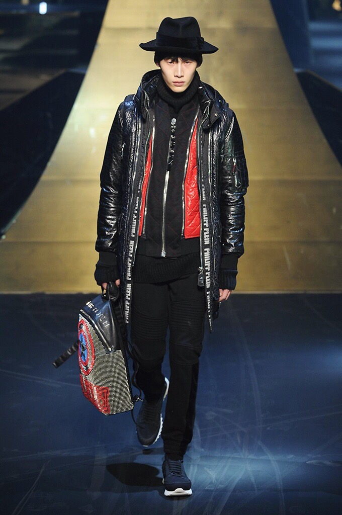 Alla Fabbrica del Vapore si mescola la musica da disco a quella di Wagner, effetti sonori ed effetti ottici e tanta, tanta voglia di scatenarsi. Va in scena la sfilata di Philipp Plein , ad aprire lo show un gruppo di bikers in Bmx e skaters attaccati a corde flou. L’uomo Plein è un’urban-hipster di impronta trasgressiva i capi di punta sono le giacche, in pelle stile bikers, e bomber dal piglio urban , cappelli, guanti bandane , biker boots e chiodi da portare su t-shirt ispirate ai super eroi e i completi con chiusura a scialle che fanno la differenza. Tavole logate con Batman e Captain America. Philipp Plein porta in passerella gli skater di nuova generazione, dallo spirito hipster e lo stile dark. È la svolta «taylor-made» ! il piatto forte: molta pelle, tante borchie, pantaloni di pelle, classico Plein, ma anche fatti a maglia. Il ritorno della borsa, maxi o zaino, anche questa con impresso il marchio del supereroe di turno. La collezione tutta nera intervallata da intarsi grigi spalmati di Swarovski. Special Guest il rapper Lil Wayne che tra effetti speciali e la Cavalcata delle Valchirie suonata dal vivo da un’orchestra classica Ci ha emozionato TUTTI!