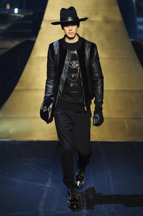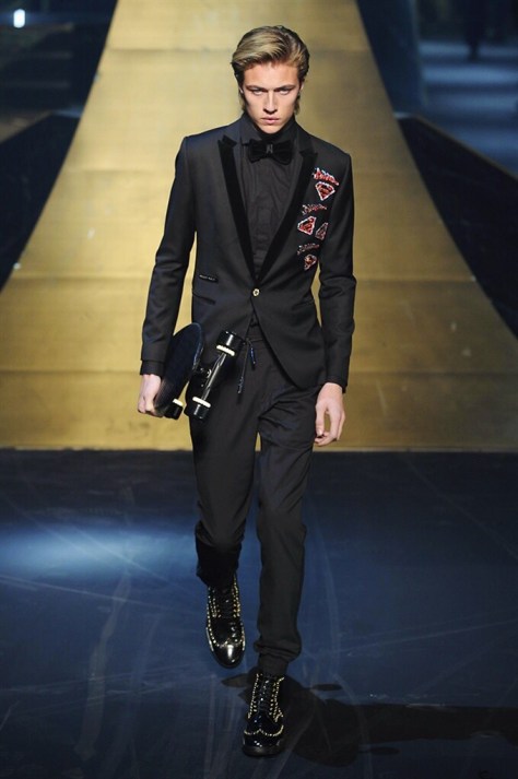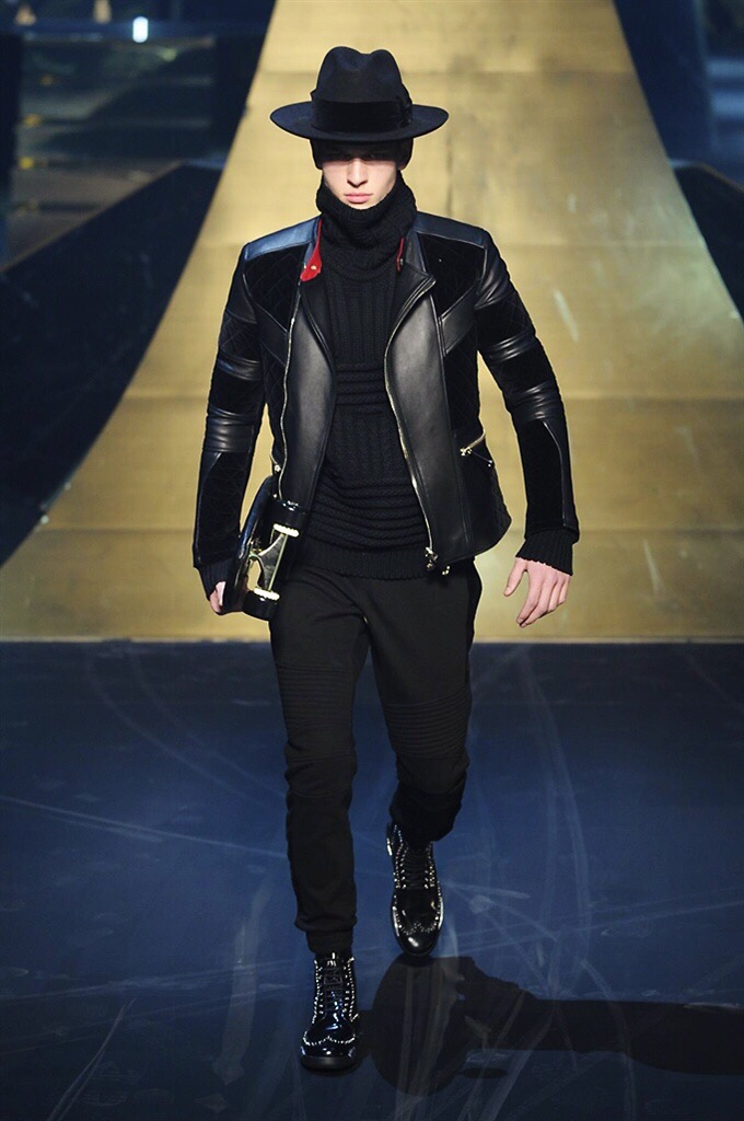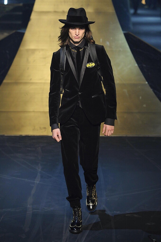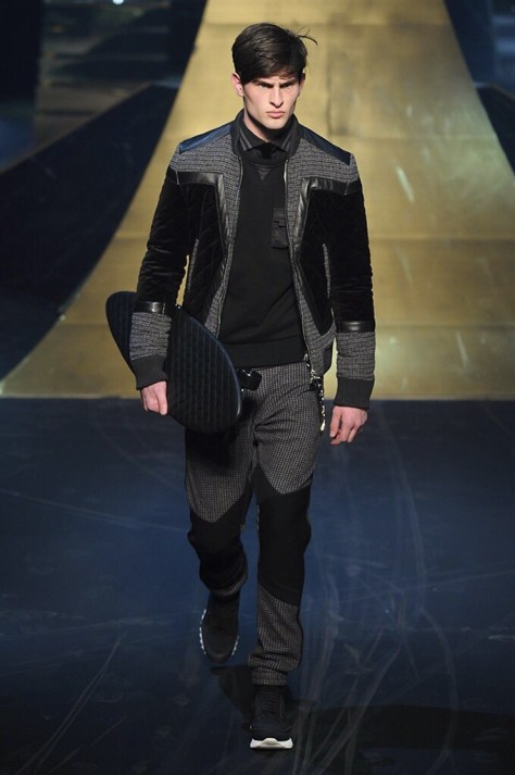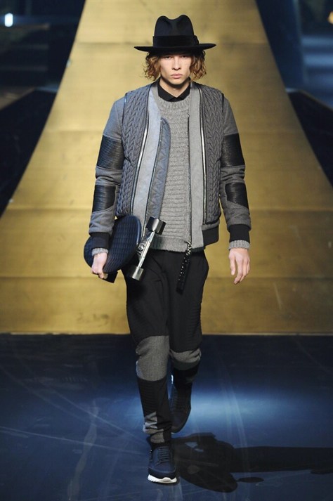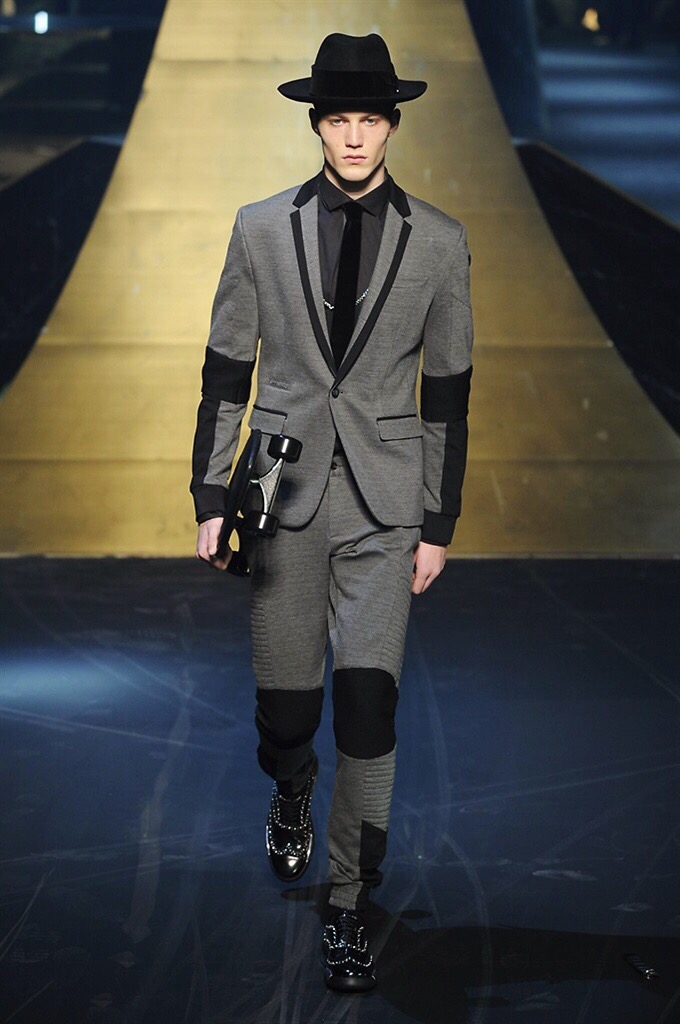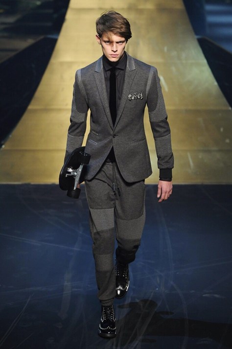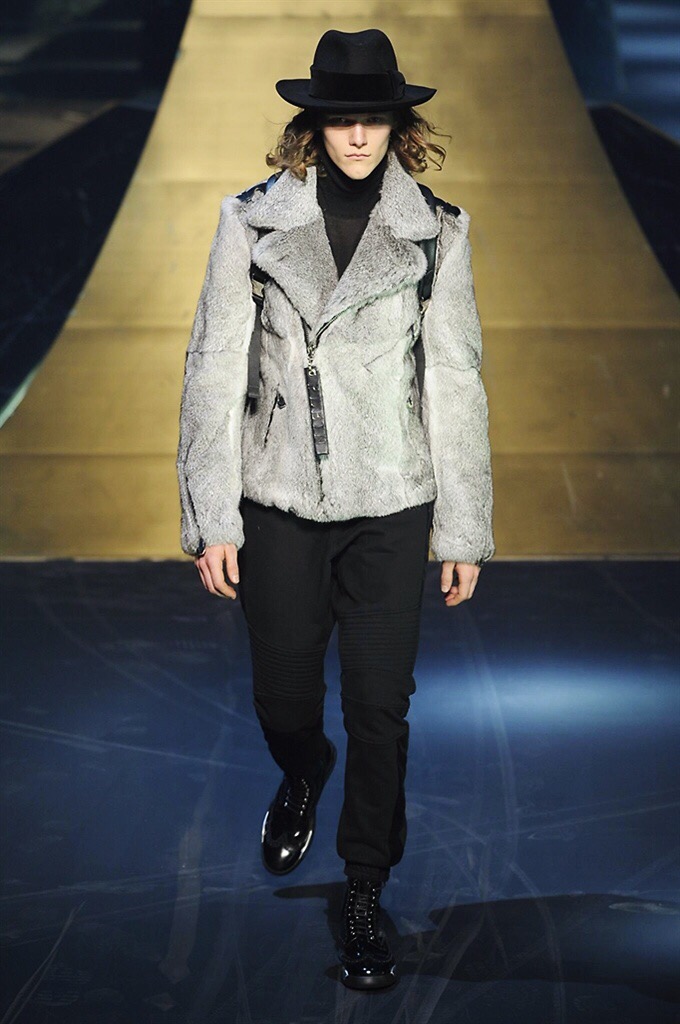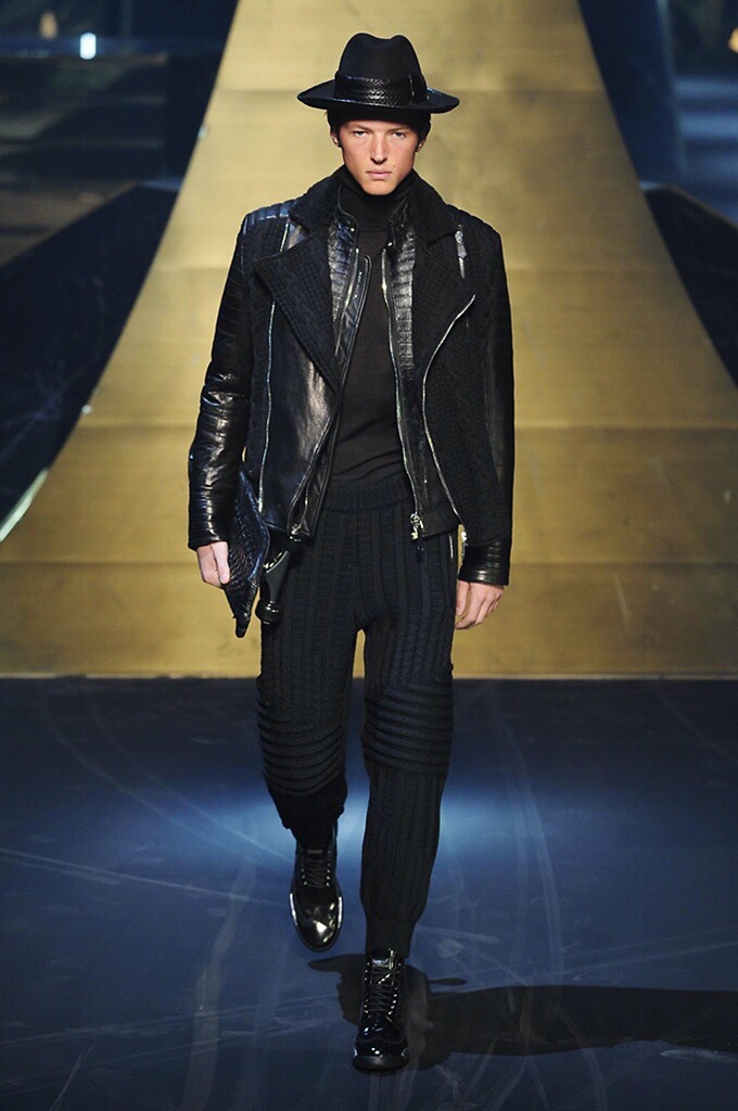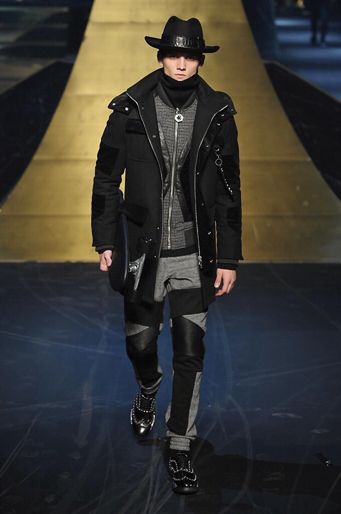 Alla Fabbrica del Vapore si mescola la musica da disco a quella di Wagner, effetti sonori ed effetti ottici e tanta, tanta voglia di scatenarsi. Va in scena la sfilata di Philipp Plein , ad aprire lo show un gruppo di bikers in Bmx e skaters attaccati a corde flou. L’uomo Plein è un’urban-hipster di impronta trasgressiva i capi di punta sono le giacche, in pelle stile bikers, e bomber dal piglio urban , cappelli, guanti bandane , biker boots e chiodi da portare su t-shirt ispirate ai super eroi e i completi con chiusura a scialle che fanno la differenza. Tavole logate con Batman e Captain America. Philipp Plein porta in passerella gli skater di nuova generazione, dallo spirito hipster e lo stile dark. È la svolta «taylor-made» ! il piatto forte: molta pelle, tante borchie, pantaloni di pelle, classico Plein, ma anche fatti a maglia. Il ritorno della borsa, maxi o zaino, anche questa con impresso il marchio del supereroe di turno. La collezione tutta nera intervallata da intarsi grigi spalmati di Swarovski. Special Guest il rapper Lil Wayne che tra effetti speciali e la Cavalcata delle Valchirie suonata dal vivo da un’orchestra classica Ci ha emozionato TUTTI!
