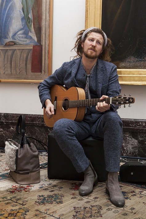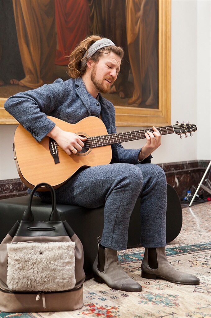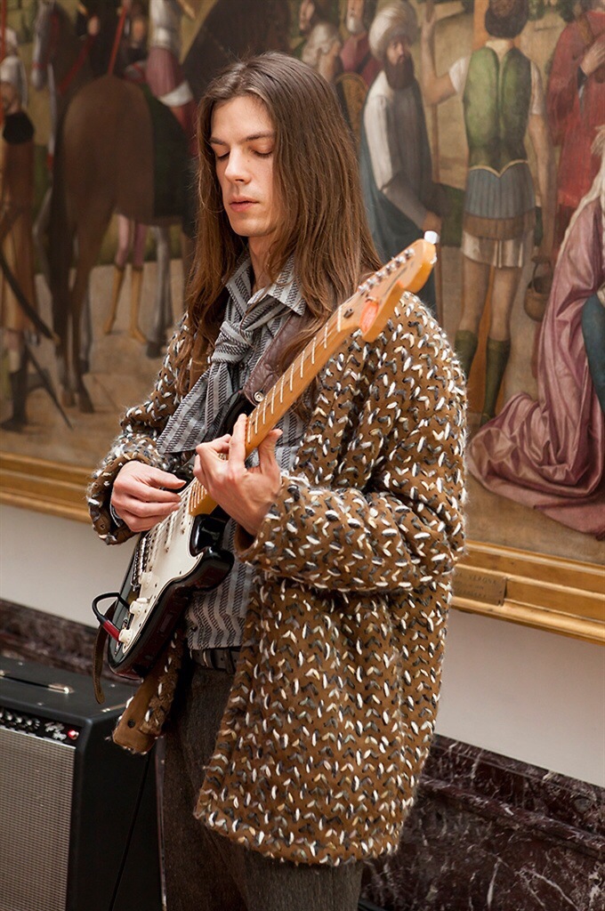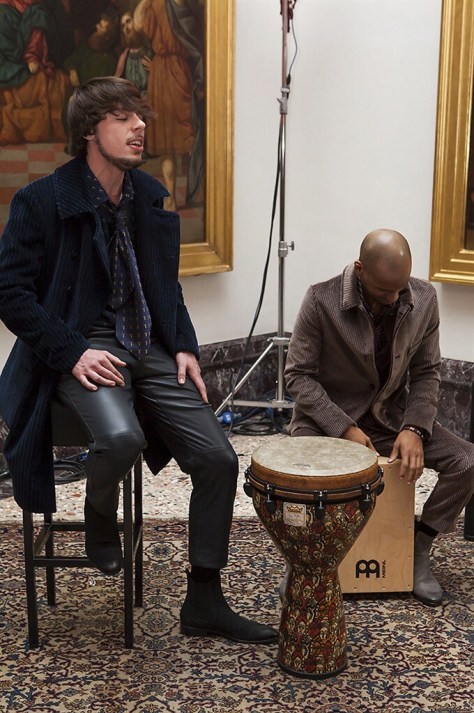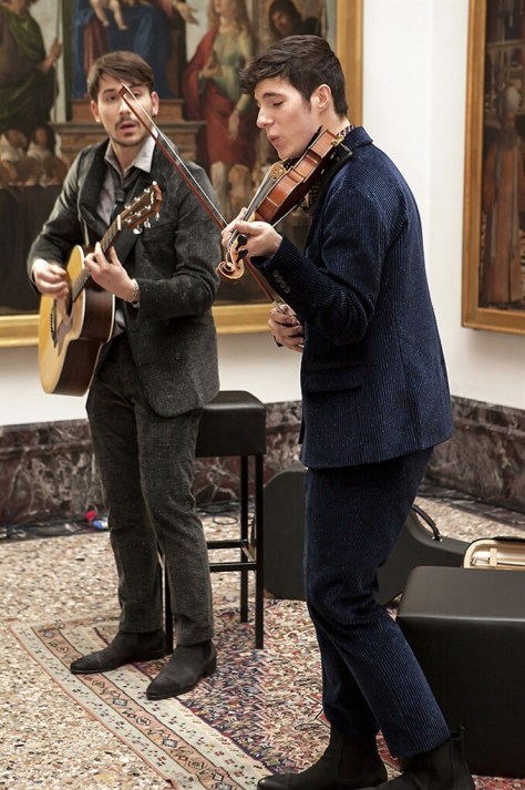 Un percorso d’arte, voluto fortemente da Gaia Trussardi, costellato da musicisti contemporanei “Museum Buskers” gli artisti di strada che indossano i capi della collezione, un po’ rock un po’ casual, suonando brani cult. Capi fluidi, dinamici decontractè, che riprendono la moda degli Anni Settanta: giubbotti e bomber marsina che ricordano quelli indossati dai Beatles, giacche e cardigan, cappotti e cappelli; la pelletteria rappresentata da una borsa a secchiello che sottolinea gli accenti ed il gusto indiscusso del Levriero.