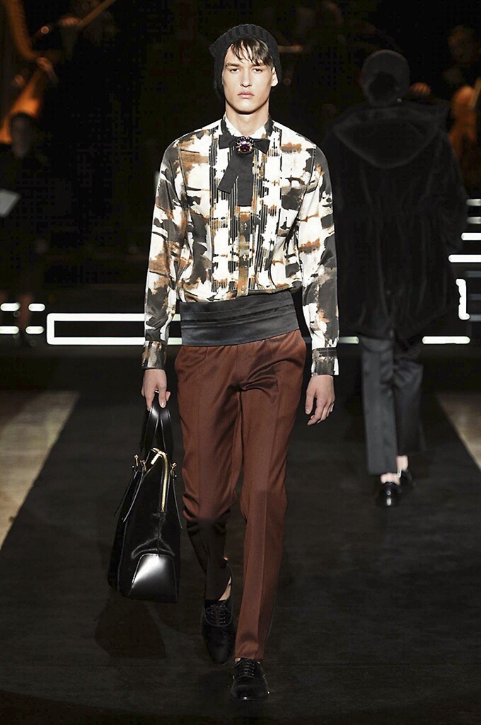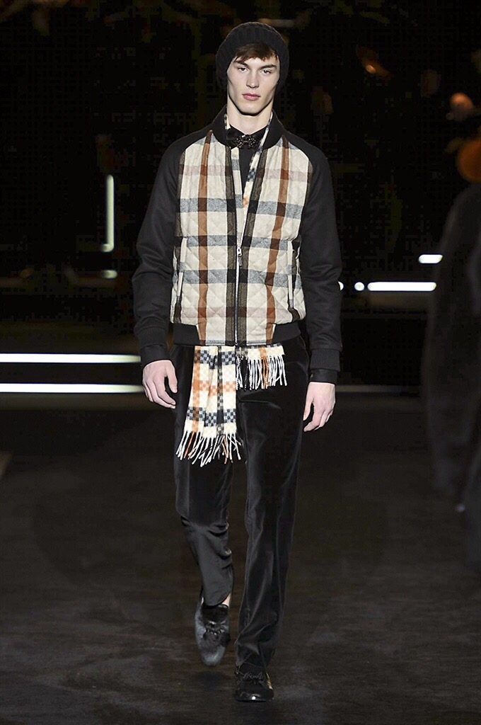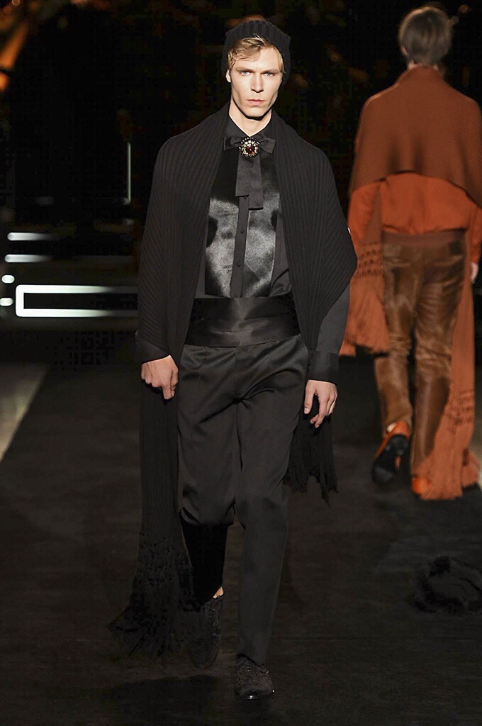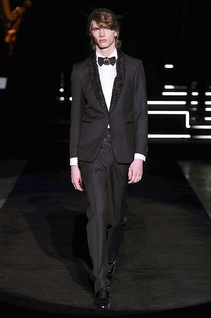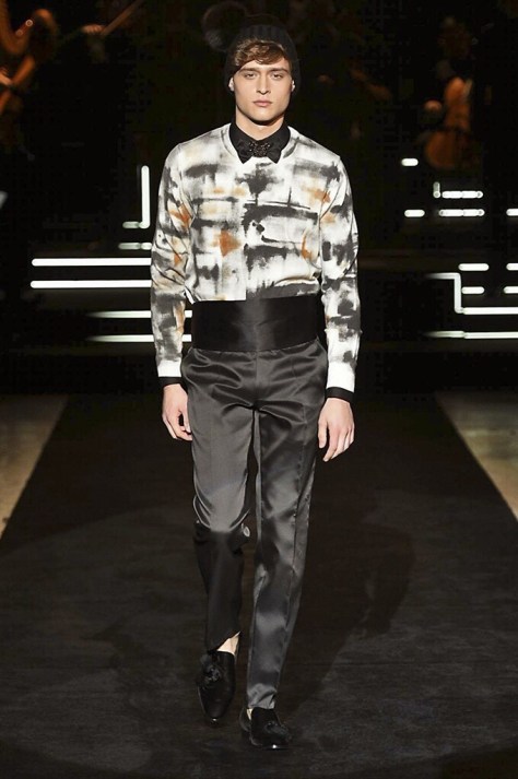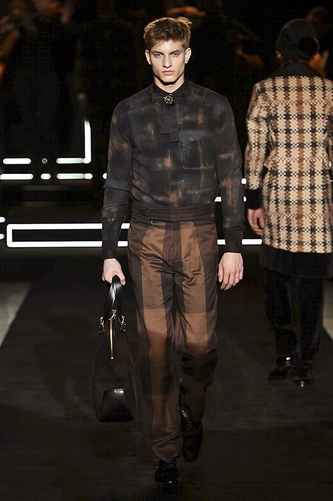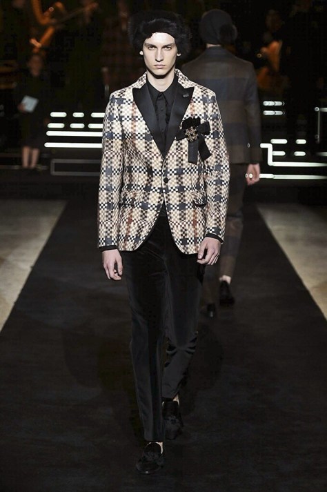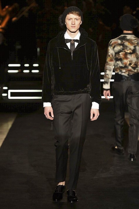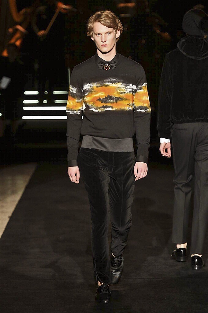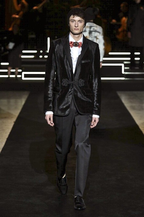 il direttore creativo di Daks, Filippo Scuffi, omaggia l’English Evening. Una collezione ispirata a quell’irresistibile fascino inglese dall’eleganza senza tempo. Un po’ stile transilvano e un po’ dandy, l’uomo di Daks incede elegantemente sulle passerelle della Milano Fashion Week maschile, presentando la nuova collezione per l’autunno inverno 2016-2017, fatta di abiti scuri, mantelle e spille goth-chic. Smoking rivisitati , georgette e chiffon rivestono le camicie, arricchite da plastron ton sur ton ed in contrasto, sia materiale che cromatico. Velluto nero, raso di sera e il “moiré” che esprimono a pieno l’animo Dandy. La maglieria è preziosa nella migliore tradizione Daks: cashmere, alpaca e mohair che diventano una pregiata tela dove poter dipingere un’opera unica e irripetibile, realizzata a mano da un artista Italiano. Le borse in suede, rifinite da dettagli in pelle plongé. Bronzo, rusty in varie shade di luminosità, e una sfumatura di ocra più cupo si uniscono al nero nel creare le tonalità scelte da Filippo Scuffi per la Collezione. Daks va a tradurre l’elegante ironia, a tratti surreale, che da sempre gli Inglesi insegnano al mondo: elementi in apparente contrasto tra loro che si trasformano in una veste da sera. Giacchini tecnici rivestiti di velluto panné di stea, il parka tipicamente brit, fatti in velluto foderato di montone, l’etnico poncho in velluto di seta, con delle frange di raso da indossare sotto la giacca da smoking, fino ai pantaloni da equitazione, che perdono la loro essenza sportiva per scoprire l’eleganza sottolineata da una cintura in raso di seta. Gli accessori sono pensati per poter sottolineare con grande ironia leggera, la grandissima eleganza della Collezione: cappelli di lana con pon pon di pelo, fiocchi e nastri di gros-grain applicati sul rever della giacca a mo’ di fiore ed eleganti spille che ricreano con la luce dei cristalli i colori dell’iconico house-check Daks. La Collezione prende vita in uno spettacolo, circondato da una Location molto esclusiva e con un set-up teatrale dove i modelli, dal Look “Brit” e sognante, si trasformano in raffinati dandy.
