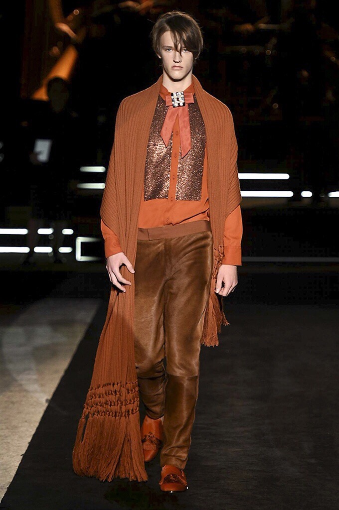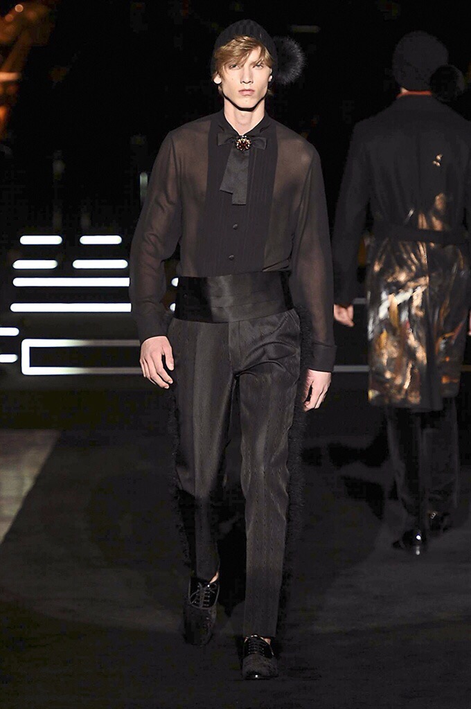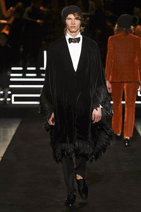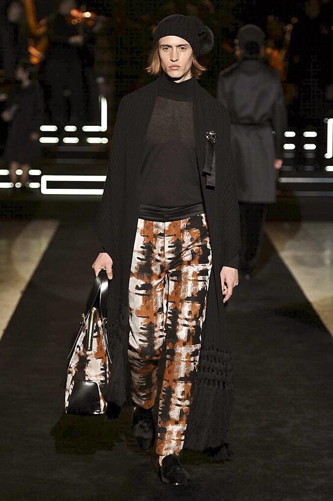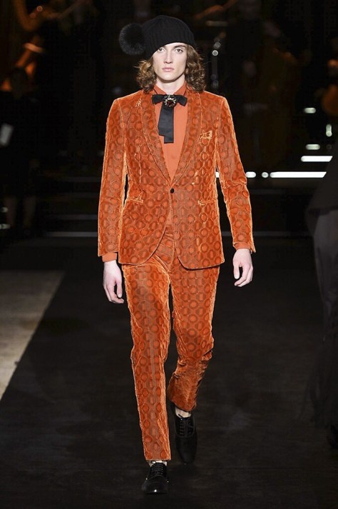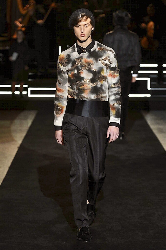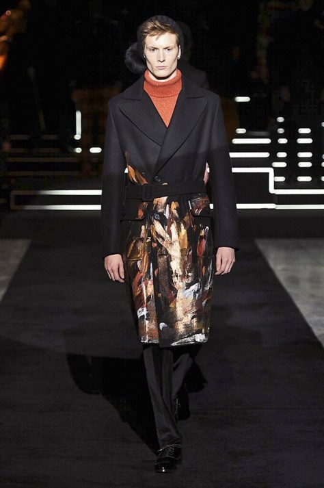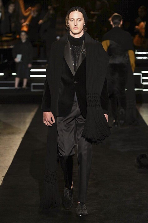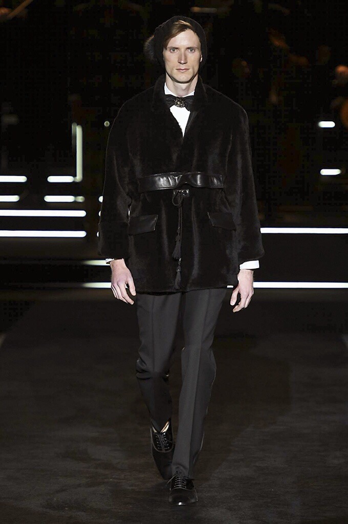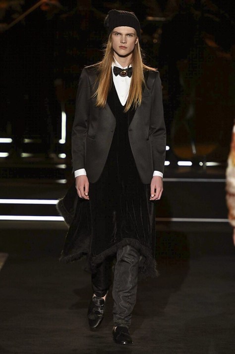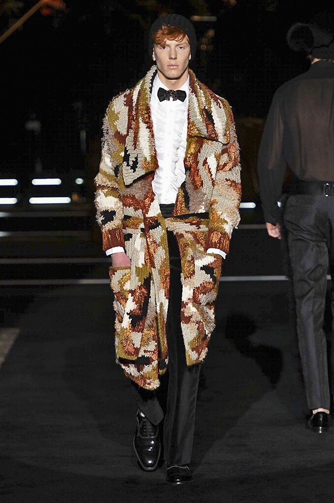 il direttore creativo di Daks, Filippo Scuffi, omaggia l’English Evening. Una collezione ispirata a quell’irresistibile fascino inglese dall’eleganza senza tempo. Un po’ stile transilvano e un po’ dandy, l’uomo di Daks incede elegantemente sulle passerelle della Milano Fashion Week maschile, presentando la nuova collezione per l’autunno inverno 2016-2017, fatta di abiti scuri, mantelle e spille goth-chic. Smoking rivisitati , georgette e chiffon rivestono le camicie, arricchite da plastron ton sur ton ed in contrasto, sia materiale che cromatico. Velluto nero, raso di sera e il “moiré” che esprimono a pieno l’animo Dandy. La maglieria è preziosa nella migliore tradizione Daks: cashmere, alpaca e mohair che diventano una pregiata tela dove poter dipingere un’opera unica e irripetibile, realizzata a mano da un artista Italiano. Le borse in suede, rifinite da dettagli in pelle plongé. Bronzo, rusty in varie shade di luminosità, e una sfumatura di ocra più cupo si uniscono al nero nel creare le tonalità scelte da Filippo Scuffi per la Collezione. Daks va a tradurre l’elegante ironia, a tratti surreale, che da sempre gli Inglesi insegnano al mondo: elementi in apparente contrasto tra loro che si trasformano in una veste da sera. Giacchini tecnici rivestiti di velluto panné di stea, il parka tipicamente brit, fatti in velluto foderato di montone, l’etnico poncho in velluto di seta, con delle frange di raso da indossare sotto la giacca da smoking, fino ai pantaloni da equitazione, che perdono la loro essenza sportiva per scoprire l’eleganza sottolineata da una cintura in raso di seta. Gli accessori sono pensati per poter sottolineare con grande ironia leggera, la grandissima eleganza della Collezione: cappelli di lana con pon pon di pelo, fiocchi e nastri di gros-grain applicati sul rever della giacca a mo’ di fiore ed eleganti spille che ricreano con la luce dei cristalli i colori dell’iconico house-check Daks. La Collezione prende vita in uno spettacolo, circondato da una Location molto esclusiva e con un set-up teatrale dove i modelli, dal Look “Brit” e sognante, si trasformano in raffinati dandy.