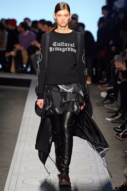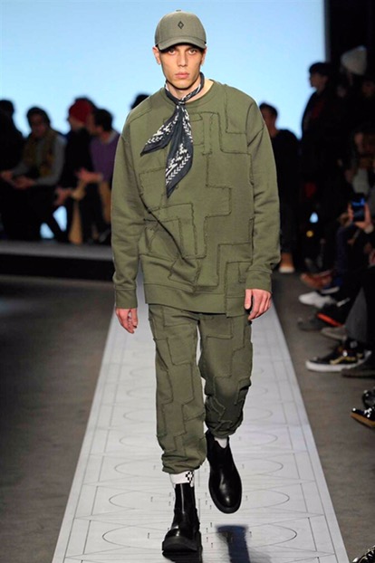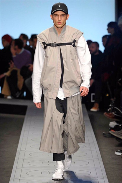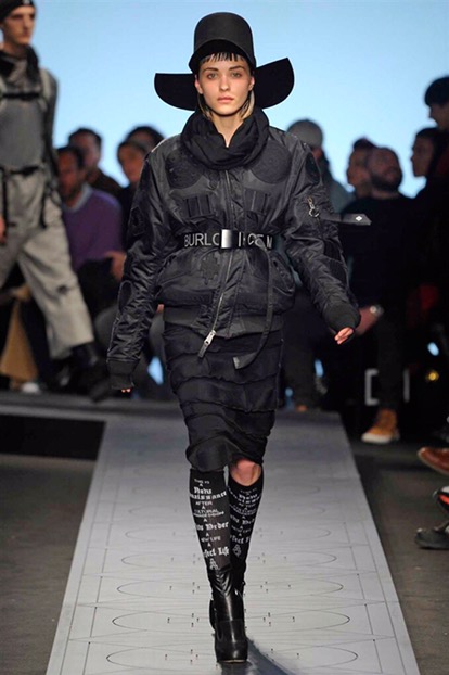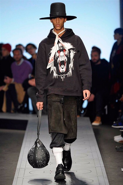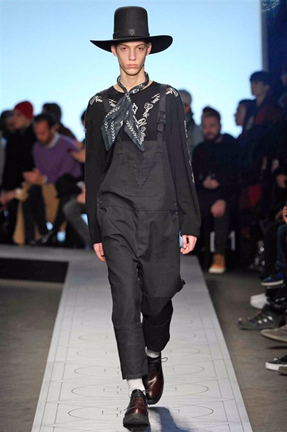 Indossano cappelli dalla tesa larga che si ispirano ai modelli della Patagonia, Paese natale di Burlon. E sfoggiano capi e accessori delle nuove capsule collection realizzate in collaborazione con Kappa, Reebok, Alpha industries, Starter e Ilariusss. Mixati a camicie di pelle, gauchos tech, felpe over e maglieria ricamata. Il tutto declinato nelle nuances del nero, del grigio, del verdone e del burgundy.