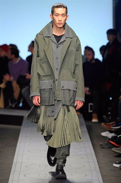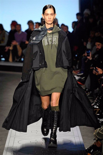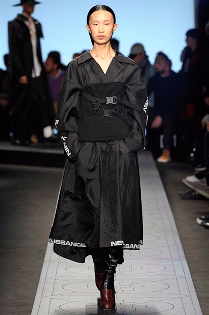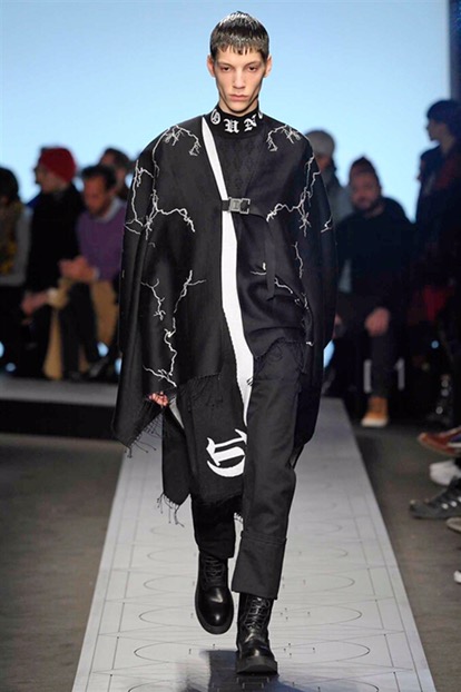 New renaissance, una nuova rinascita. Come se tutto prima fosse stato distrutto . Per creare un nuovo ordine e una nuova vita in un mondo perfetto. È questa l’idea di partenza della collezione autunno-inverno 2017/18 menswear e womenswear di Marcelo Burlon County of Milan. Sulle note di alcuni dei più famosi tanghi argentini, eseguiti dal vivo per l’occasione dalla Milano chamber orchestra posizionata al centro della sala, i modelli raggiungono la passerella come un’armata militare e futuristica.