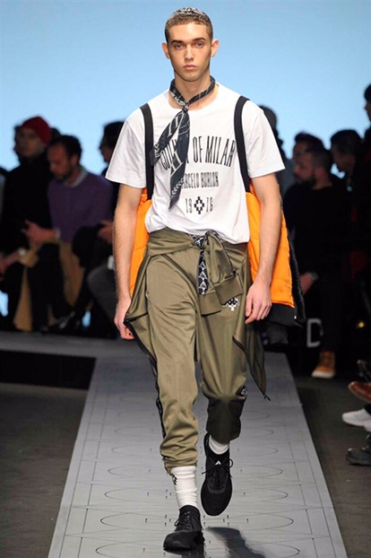 Marcelo Burlon torna sulle passerelle milanesi con nuove regole, in pedana sfoggia le collaborazioni studiate con Kappa, Reebok, Alpha industries, Starter e Ilariusss
