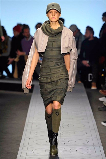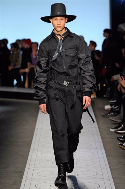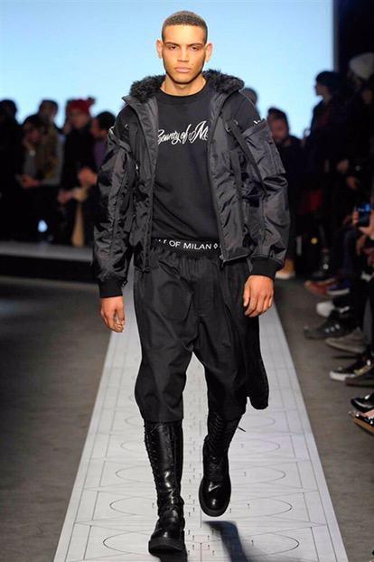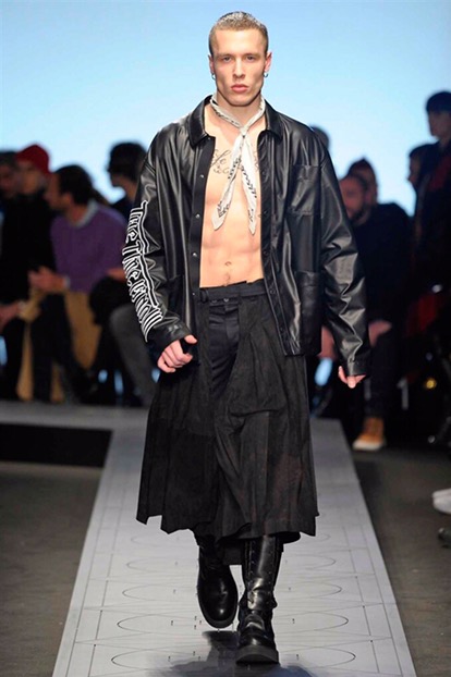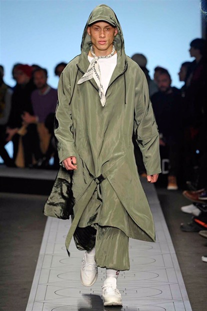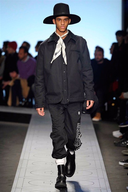 Indossano cappelli dalla tesa larga che si ispirano ai modelli della Patagonia, Paese natale di Burlon. E sfoggiano capi e accessori delle nuove capsule collection realizzate in collaborazione con Kappa, Reebok, Alpha industries, Starter e Ilariusss. Mixati a camicie di pelle, gauchos tech, felpe over e maglieria ricamata. Il tutto declinato nelle nuances del nero, del grigio, del verdone e del burgundy.