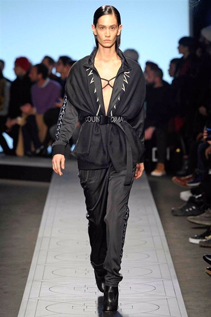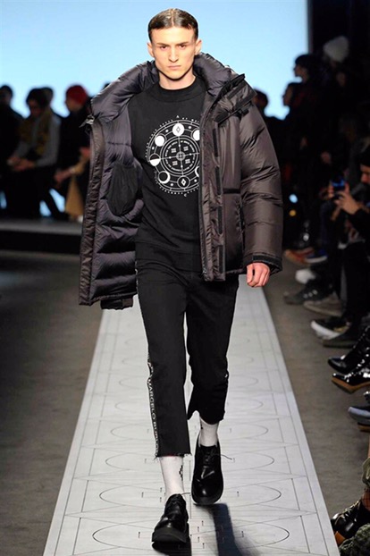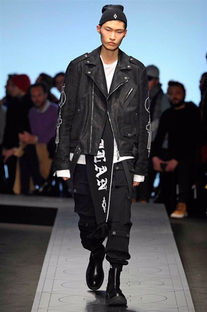 New renaissance, una nuova rinascita. Come se tutto prima fosse stato distrutto . Per creare un nuovo ordine e una nuova vita in un mondo perfetto. È questa l’idea di partenza della collezione autunno-inverno 2017/18 menswear e womenswear di Marcelo Burlon County of Milan. Sulle note di alcuni dei più famosi tanghi argentini, eseguiti dal vivo per l’occasione dalla Milano chamber orchestra posizionata al centro della sala, i modelli raggiungono la passerella come un’armata militare e futuristica.