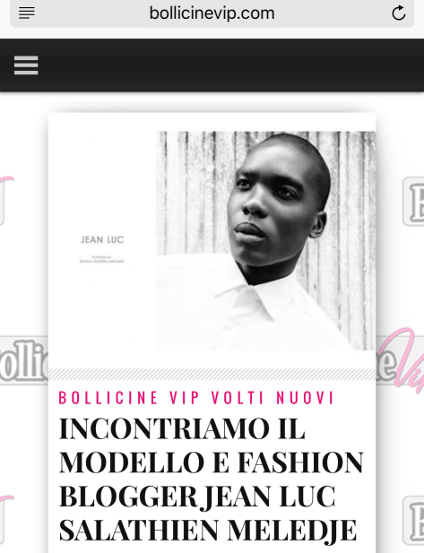 La mia ultima intervista per il magazine online bollicine vip : http://www.bollicinevip.com/incontriamo-il-modello-e-fashion-blogger-jean-salathien-meledje/