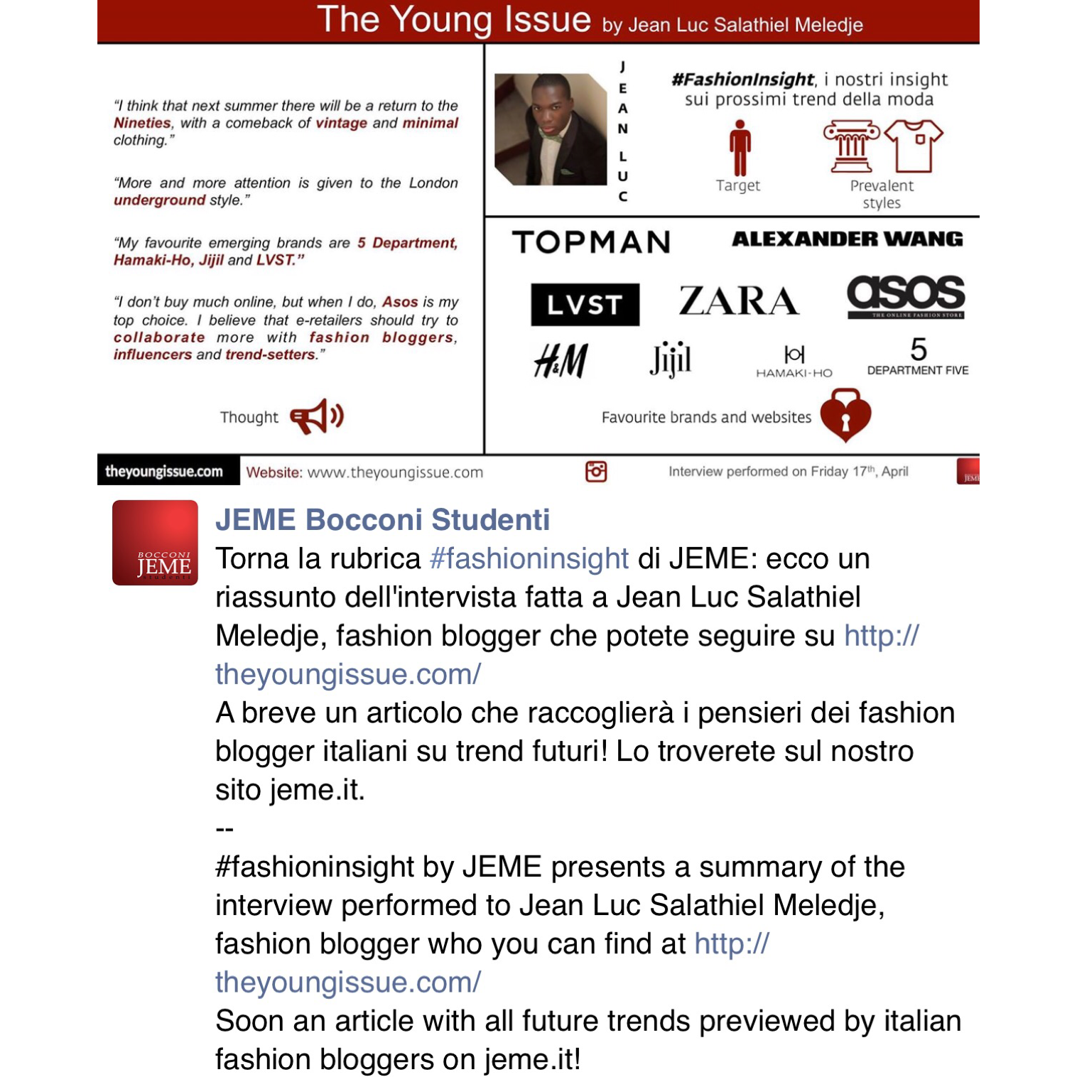 tervista per la Sezione Fashion -Jeme- dell’università Luigi Bocconi di Milano.