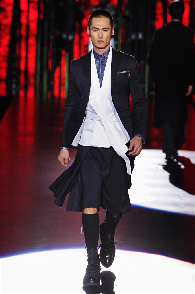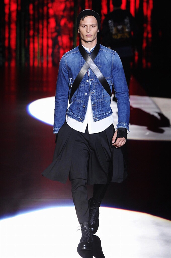 La nuova collezione firmata Dsquared2 risulta essere sofisticata ed eccentrica per dettagli, lavorazioni e ricami.Dean e Dan ci catapultano in un universo opulento popolato da creature che avanzano con passo deciso e sprezzante, portando in passerella una donna sensuale, che fa della sua femminilità un punto di forza e che indossa capi dall’allure militare, sottolineata anche dalle cromie che spaziano dall’army green al marrone fino al camouflage, declinato in tonalità differenti.