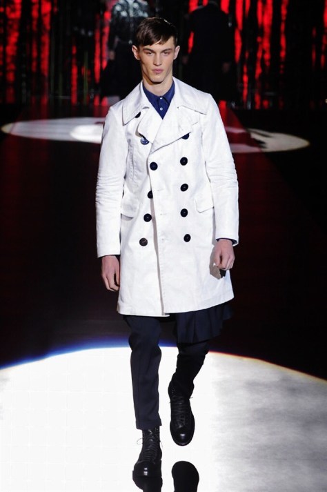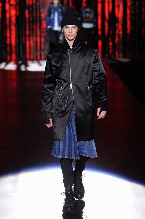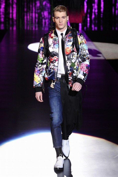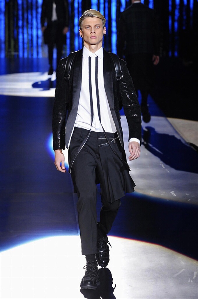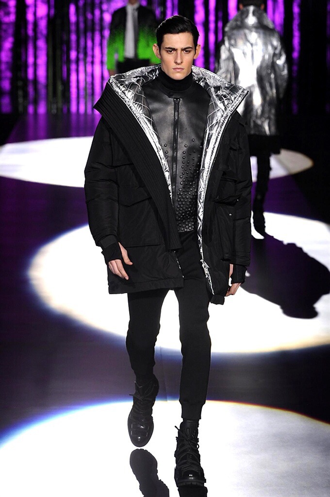 La sera invece si tinge di nero per longdress che evidenziano la silhouette, lunghi cappotti e micro blazer con dettagli in pelliccia. Spazio però anche al blue denim grande classico di Dsquared2 per giacche e pantaloni che diventano immediatamente chic grazie ad applicazioni e dettagli shiny.
