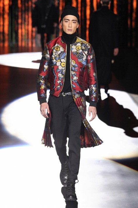 Giochi di sovrapposizioni, textures differenti mixate e intrecciate, ricchezza nei dettagli, nelle applicazioni e nei ricami che riecheggiano culture tribali come quella Masai contribuiscono ad arricchire la collezione, che risulta decisamente eccentrica ma perfettamente in linea con l’identità della griffe.