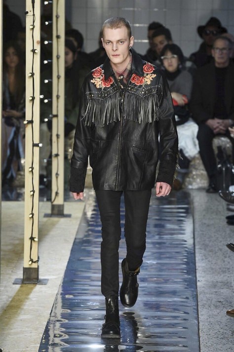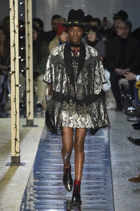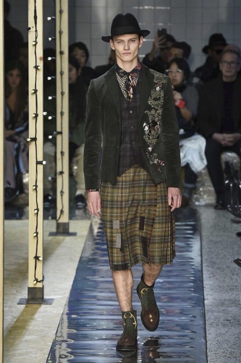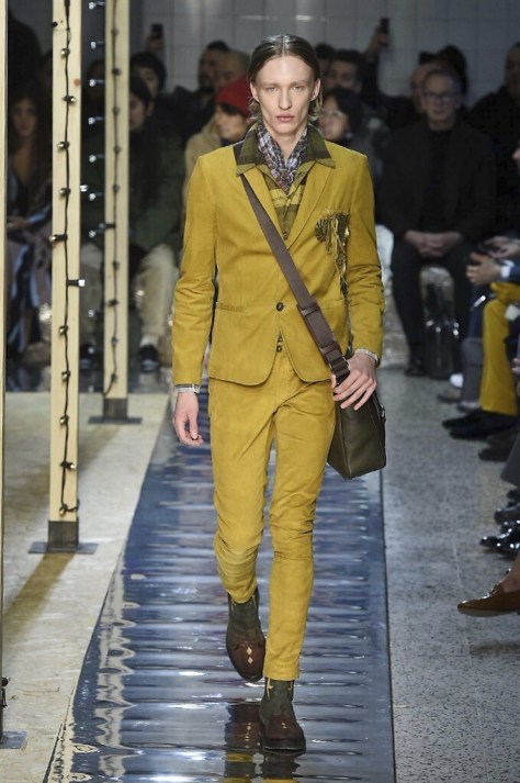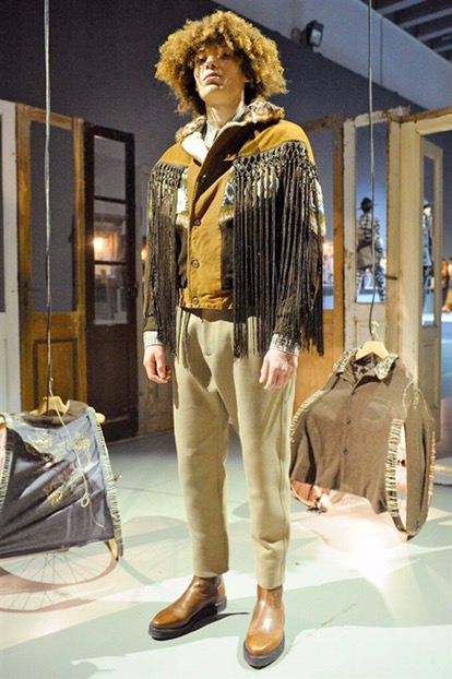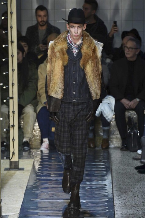 Antonio Marras, che ha sfilato sulle passerelle di Milano Moda Uomo ci riporta nel vecchio West, quello dei cowboys e degli indiani, dei cercatori d’oro e dei cacciatori di pellicce, delle donne dei saloon, de La casa della prateria, de Il buono, il brutto, il cattivo e di Sette spose per sette fratelli è l’ispirazione della collezione autunno inverno 2016 2017. L’uomo Marras indossa capi ruvidi con tweed bottonati, giacconi a quadroni coperta, maglioncioni mĂ©lange decorati, pantaloni in tartan e camicie in micro quadretti. La palette dei colori è quella della terra, del muschio, del verde bosco, militare, tortora, marrone, fango, corda, petrolio, grigio piombo e antracite e poi rosso e senape. Per i grandi freddi strati e strati di giacconi camouflage mĂ©lange imbottiti, cardigan con cappuccio in jersey infeltrito, maglioni a grandi righe, camicie intarsiate e pantaloni in velluto , giubbini biker in pelle o in stampa pitone, jeans patch o salopette e grembiuloni in denim per il duro lavoro e il gessato, il principe di galles o tessuto jacquardato a fiori. E camicie a quadri di ogni natura e provenienza. Rattoppate, intarsiate, ricamate e decorate. Immaginatevi un posto simile a poche ore da casa, in piena Sardegna. Immaginate un vecchio paese quasi disabitato, nel mezzo del nulla, alla fine di una strada sterrata che costeggia il mare. Una piazza deserta sotto al sole, case fatiscenti, polvere ed un ventone che fa rotolare le sterpaglie del deserto. Immaginatevi l’Albraxas, un locale il cui nome è tutto un programma. Immaginatevelo di notte, viaggiatori stanchi e amanti dei panorami selvaggi intenti a ballare al suono della fisarmonica. Marras ci fa sognare e fantasticare con la nostra mente. Una collezione che ci riporta alle origini, che ci ricorda che veniamo dalla terra ; una collezione dal tocco quasi “etnico”, senza dubbio eccentrica.