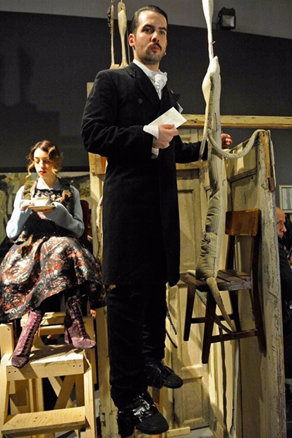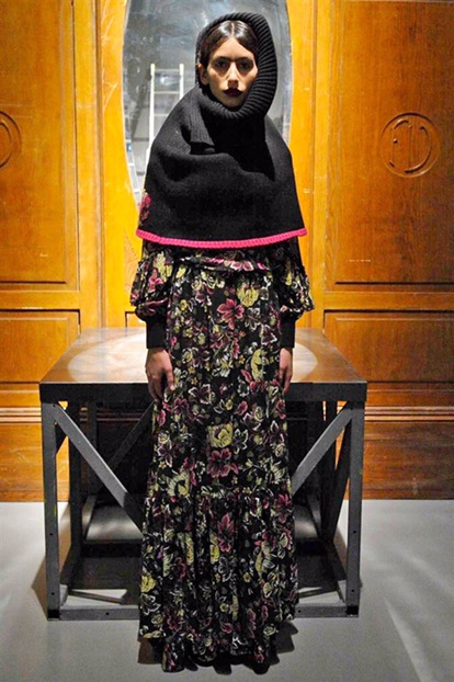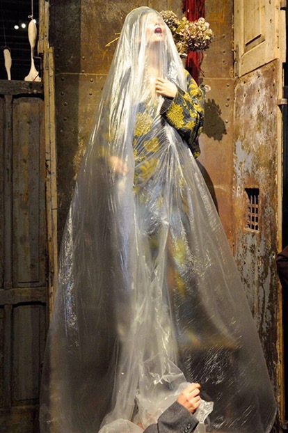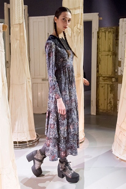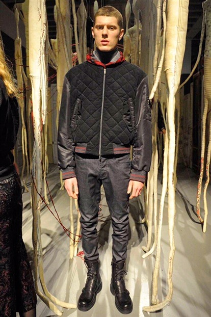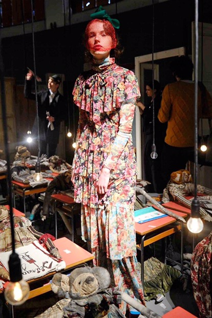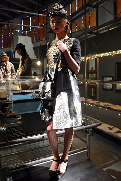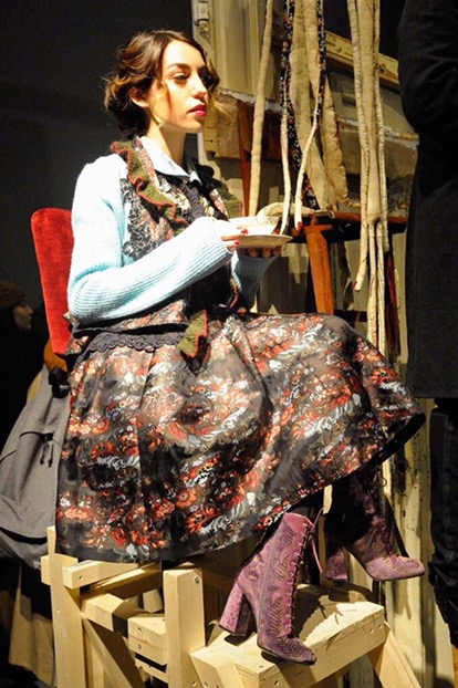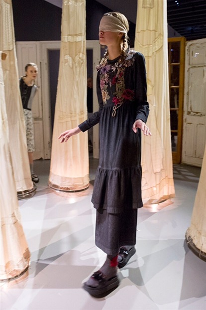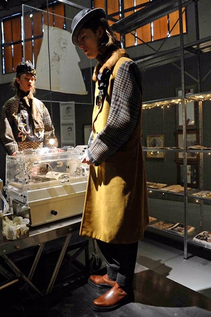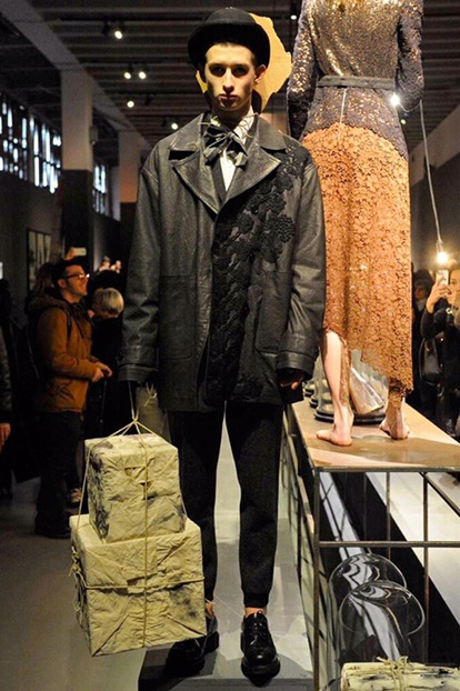 Il sogno diventa realtĂ sotto gli occhi di chi osserva le creazioni dello stilista. Marras pesca dalla memoria dell’artista e dell’uomo per dar vita a una collezione che è una vera e propria celebrazione della sua attivitĂ . Il richiamo al suo passato è evidente nelle stoffe e nel materiale utilizzato, in particolare per i capispalla. Ognuna delle venti scene allestite nello spazio della Triennale racconta una poesia e una storia in un contesto estremamente onirico. Lo stile richiama un gusto rĂ©tro contemporaneo. Se la donna è romantica, l’uomo si trasforma in un guerriero napoleonico.