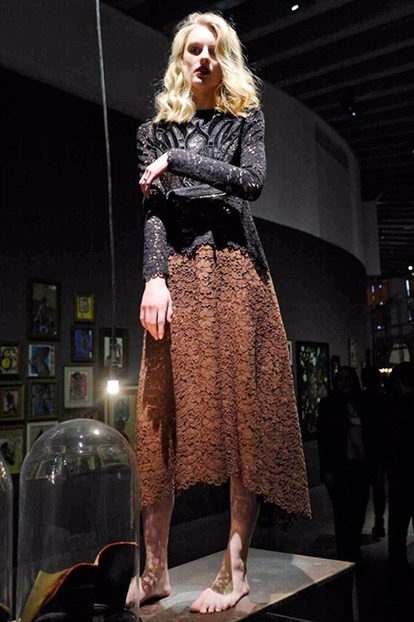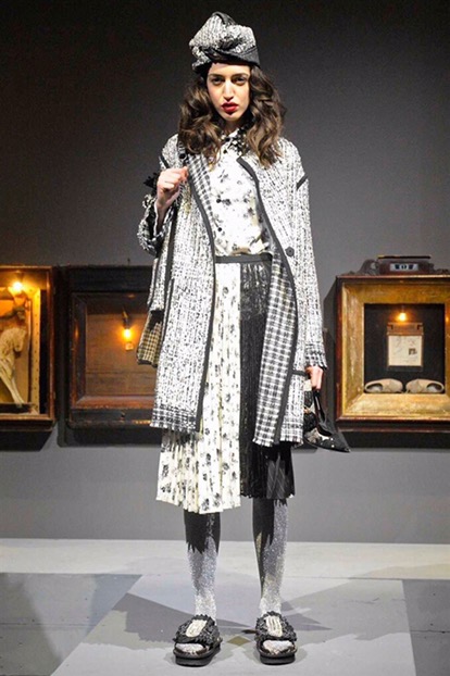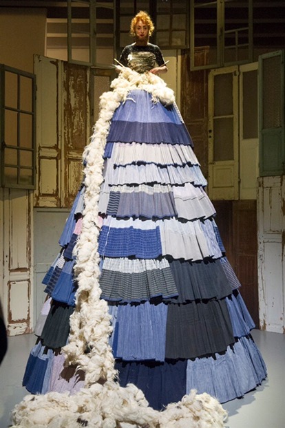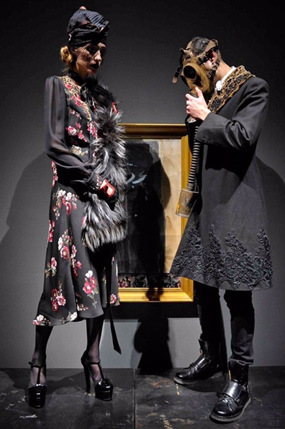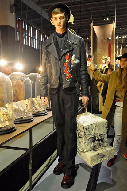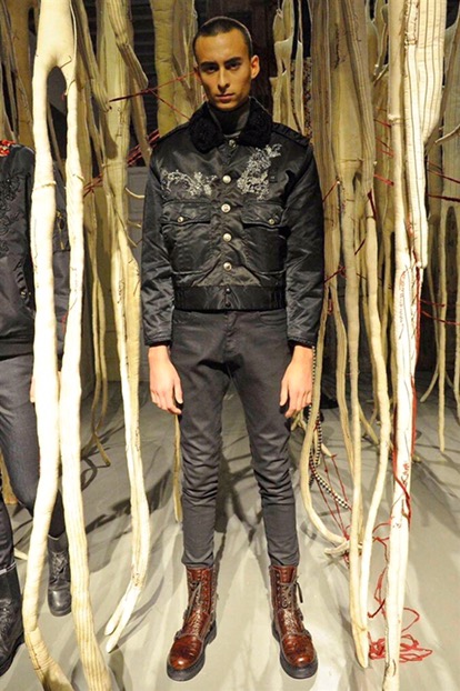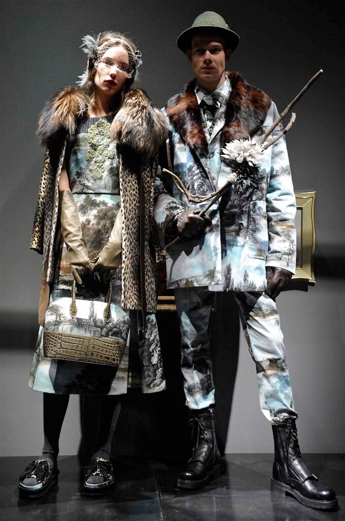 Il sogno diventa realtĂ sotto gli occhi di chi osserva le creazioni dello stilista. Marras pesca dalla memoria dell’artista e dell’uomo per dar vita a una collezione che è una vera e propria celebrazione della sua attivitĂ . Il richiamo al suo passato è evidente nelle stoffe e nel materiale utilizzato, in particolare per i capispalla. Ognuna delle venti scene allestite nello spazio della Triennale racconta una poesia e una storia in un contesto estremamente onirico. Lo stile richiama un gusto rĂ©tro contemporaneo. Se la donna è romantica, l’uomo si trasforma in un guerriero napoleonico.